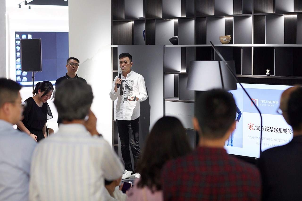 现场由特铭家具事业部总监张晔分享品牌历史,国内知名设计师王征、合作品牌戈兰尼电器现场讲述品牌合作背后的故事,艺术与文化的结合,让启幕仪式更具意义。