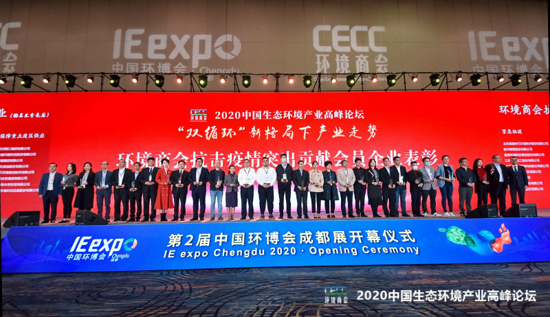 10月13日,2020中国生态环境产业高峰论坛在成都隆重举行。生态环境部副部长庄国泰,全国工商联专职副主席、党组成员邱小平,四川省委常委、成都市委书记范锐平,四川省人民政府副省长杨洪波等领导出席开幕式并致辞。
