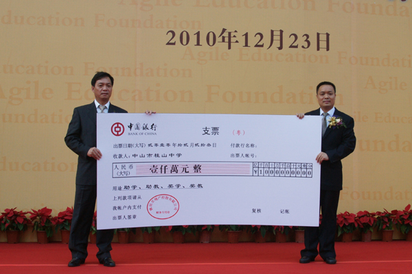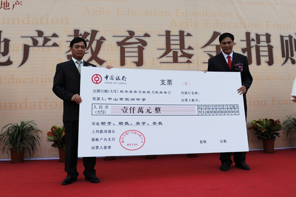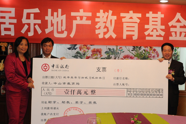 2010年,雅居乐向中山市3所中学及中山市教育局捐款6000万